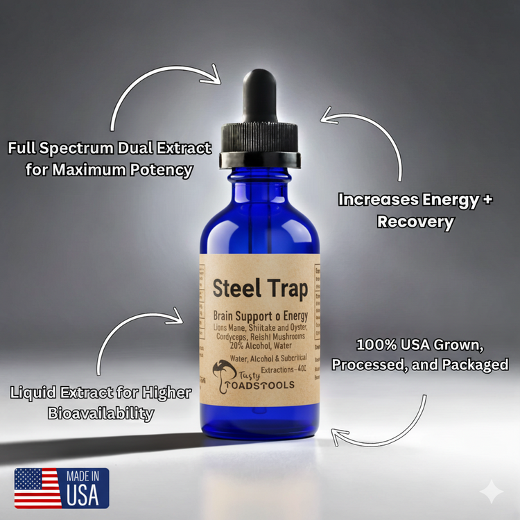 Meet Tastytoadstools: a playful, fast-absorbing mushroom tincture designed to boost your energy, recovery, and immune health—no fillers, all fruiting bodies.